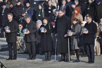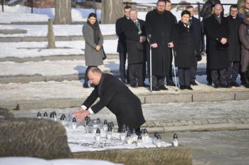 Druga część obchodów 72 rocznicy wyzwolenia obozu Auschwitz-Birkenau miała miejsce pod Pomnikiem Ofiar Obozu na terenie byłego Auschwitz II-Birkenau. Rabini oraz duchowni różnych wyznań chrześcijańskich wspólnie odczytali psalm 42 z Księgi Drugiej Psalmów, a uczestnicy ceremonii złożyli przy pomniku znicze upamiętniające ofiary Auschwitz.