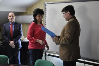W spotkaniu uczestniczyli również dyrektor Samorządowego Centrum Usług Wspólnych Halina Musiał, zastępca wójta Mirosław Smolarek i przewodniczący Komisji Ogólno-Administracyjnej, Edukacji Publicznej i Kultury Jacek Mydlarz.