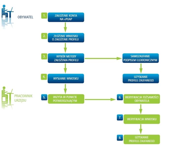 Etapy uzyskania profilu zaufanego.
