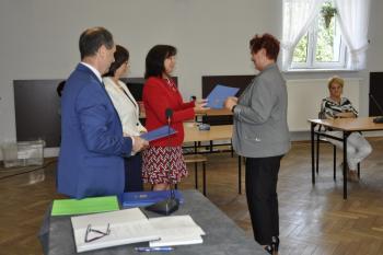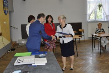Wanda Baran, Agata Dybczak, Wanda Heród, Halina Kobosko, Krystyna Korczyk, Halina Stachura, Józef Bryniarski, Albin Kojm i Stanisław Pędziwiatr odebrali z rąk wójta Mirosława Smolarka, przewodniczącej Rady Gminy Bernardyny Bryzek i zastępcy wójta Haliny Musiał zaświadczenia o wyborze.