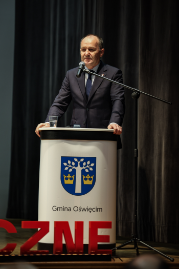 Na scenie pojawił się wójt gminy Oświęcim Mirosław Smolarek, który w swoim podsumowaniu roku 2025, przypomniał najważniejsze inwestycje dotyczące infrastruktury, ochrony środowiska,